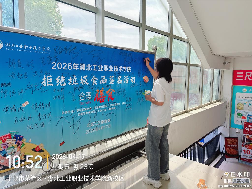 (通讯员张莉萍)4月17日,我校在食品节现场设置“拒绝垃圾食品,守护健康未来”主题签名墙,全体师生踊跃参与,以签名践行健康饮食承诺,助力学生修身计划落地。 活动现场,主题签名墙醒目直观,“严守食品安全,共筑健康校园”等标语清晰醒目。志愿者在旁发放宣传手册,讲解垃圾食品危害与合理膳食要点,引导师生树立科学饮食观念,落实学生修身计划中健康素养培育要求。